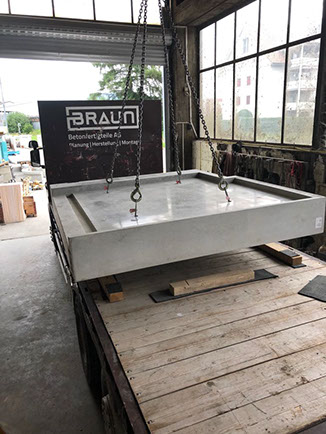 Die Balkonplatten der BRAUN AG werden vollmassiv aus hochwertigem Beton in allen Formen hergestellt. Die Platten werden mit oder ohne seitliche Aufbordungen ausgebildet. Sie überzeugen durch individuelle Planbarkeit und ein hohes Mass an Fertigungsqualität. Die Laufflächen bestehen aus schalungsglatten Beton und können auf Wunsch mit Gefälle zu einem Bodenablauf konzipiert werden. Seitliche Aufkantungen können hierbei je nach Wunsch und Anforderungen ausgeführt werden.