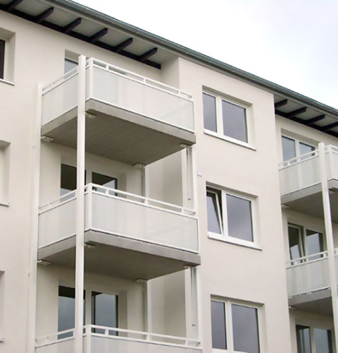 Die Balkonplatten der BRAUN AG werden vollmassiv aus hochwertigem Beton in allen Formen hergestellt. Die Platten werden mit oder ohne seitliche Aufbordungen ausgebildet. Sie überzeugen durch individuelle Planbarkeit und ein hohes Mass an Fertigungsqualität. Die Laufflächen bestehen aus schalungsglatten Beton und können auf Wunsch mit Gefälle zu einem Bodenablauf konzipiert werden. Seitliche Aufkantungen können hierbei je nach Wunsch und Anforderungen ausgeführt werden.