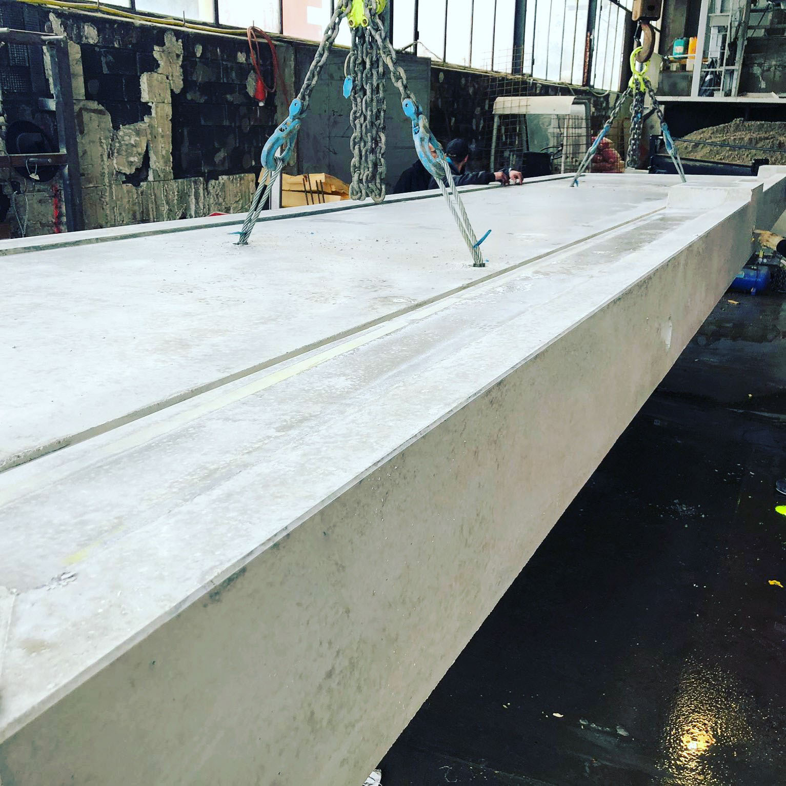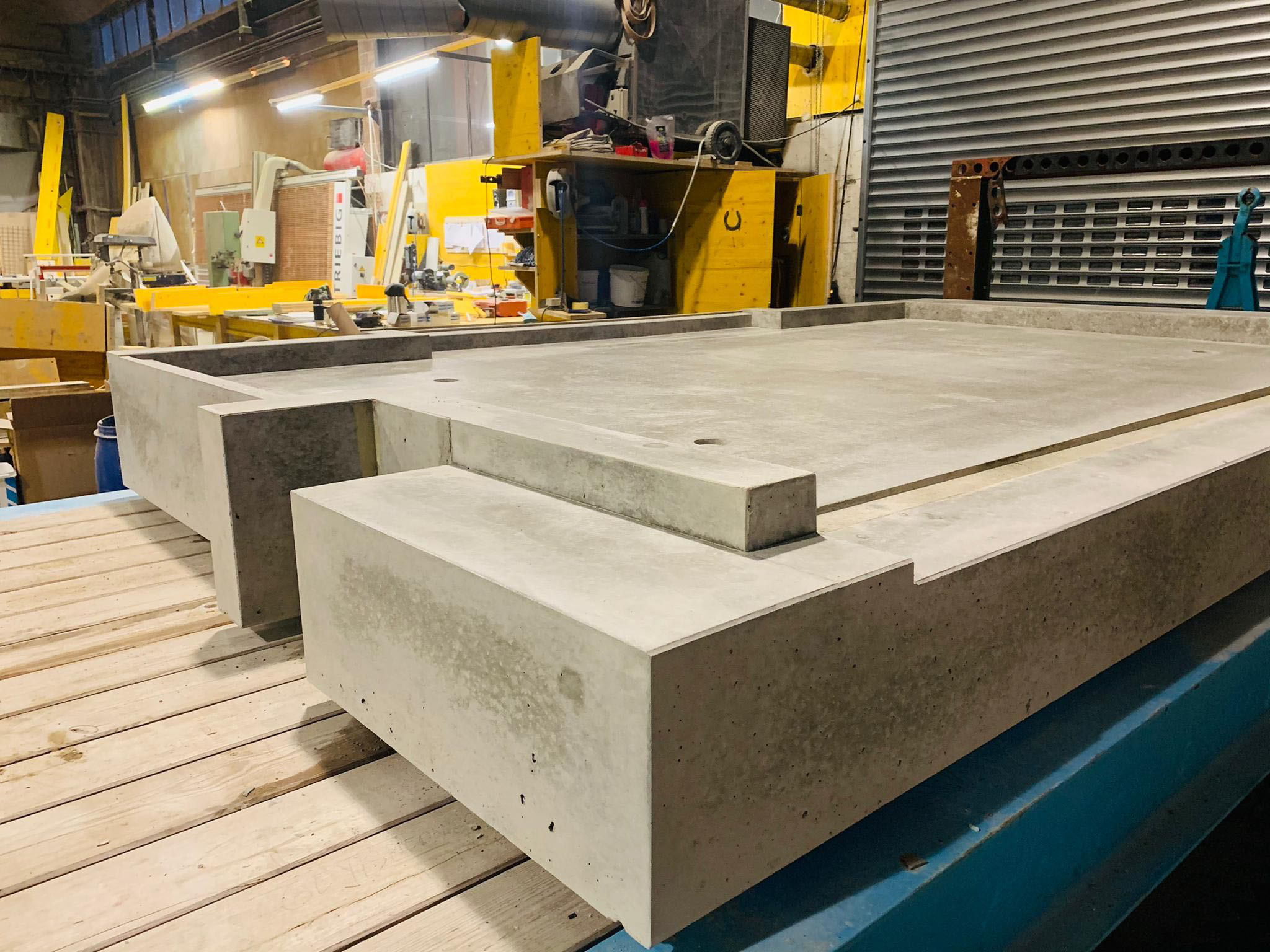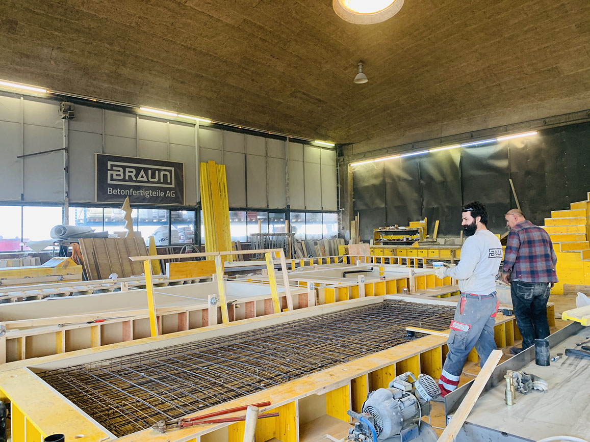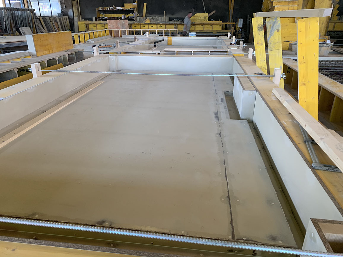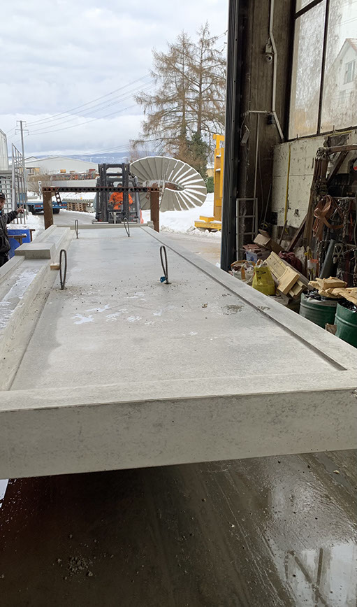 Die Fertigteilbalkone sind mit Gefälle- und Bodenablauf ausgebildet und weisen eine schalungsglatte Oberfläche und fein geglättete Unterseiten auf. Nuancen und Farbspiele von schalungsglattem Sichtbeton sind natürliche Merkmale unserer Produkte.