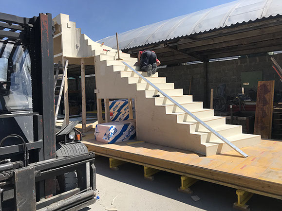 Die Ortbetontreppe wird, wie es der Name schon sagt, vor Ort eingeschalt, bewehrt und betoniert.