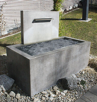 Mit unserer grossen Erfahrung im Umgang mit Wasser und Beton entwickeln und produzieren wir auf Kundenwunsch Brunnen und Wasserspiele.